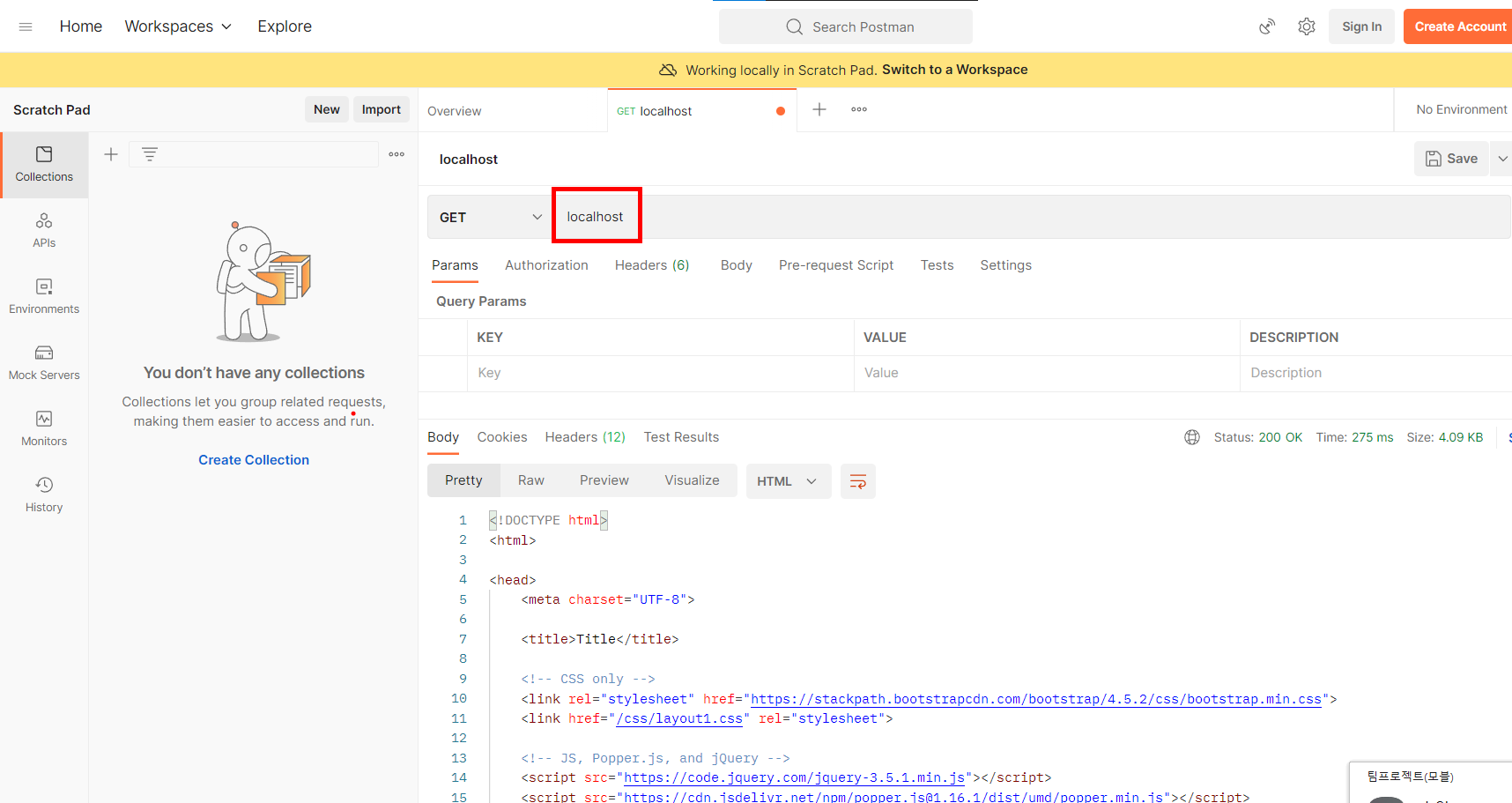 ◾ 페이지에 직업 url을 입력할 때는 Get방식밖에 확인이 안된다.