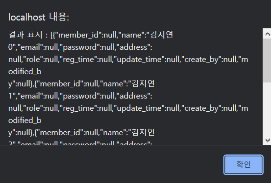◾ alert 경고창을 이용해 내용이 출력된다.