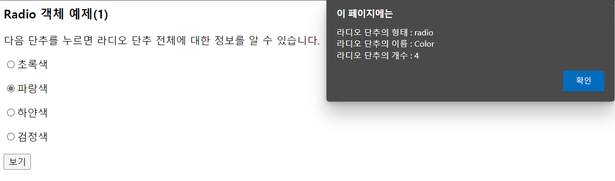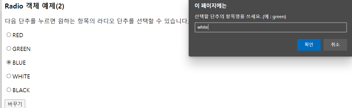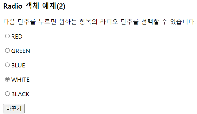 <input type= "radio" value = "blue" name = "color"> 파랑색<br>