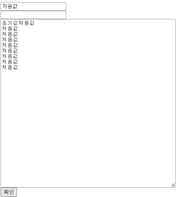 확인 버튼을 누르면 txtData인 <input> 태그에 적혀있는 값이 taData에 입력된다.