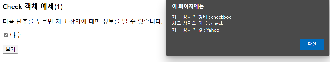보기 버튼을 누르게 되면 경고창에 입력 상자의 name과 type, 초기 입력 값과 현재 입력 값을 알 수 있다.