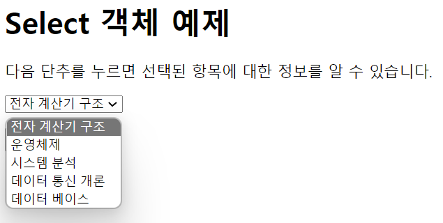 document.폼이름.객체이름.select(); ==> 해당 객체의 내용을 블록지정한다.